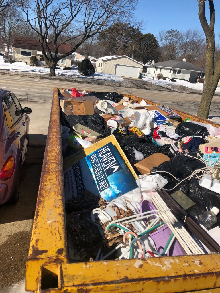Then they moved on to the garage. And while I’m sort of apologetic about not showing a “before” picture, the pile in the dumpster says it all.