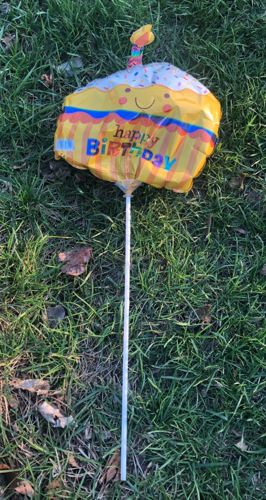 Yes, a mylar balloon saying “Happy Birthday.” It’s too deflated to have been left there for me by… whom? but the timing is kind of… weird? It’s all so strange.