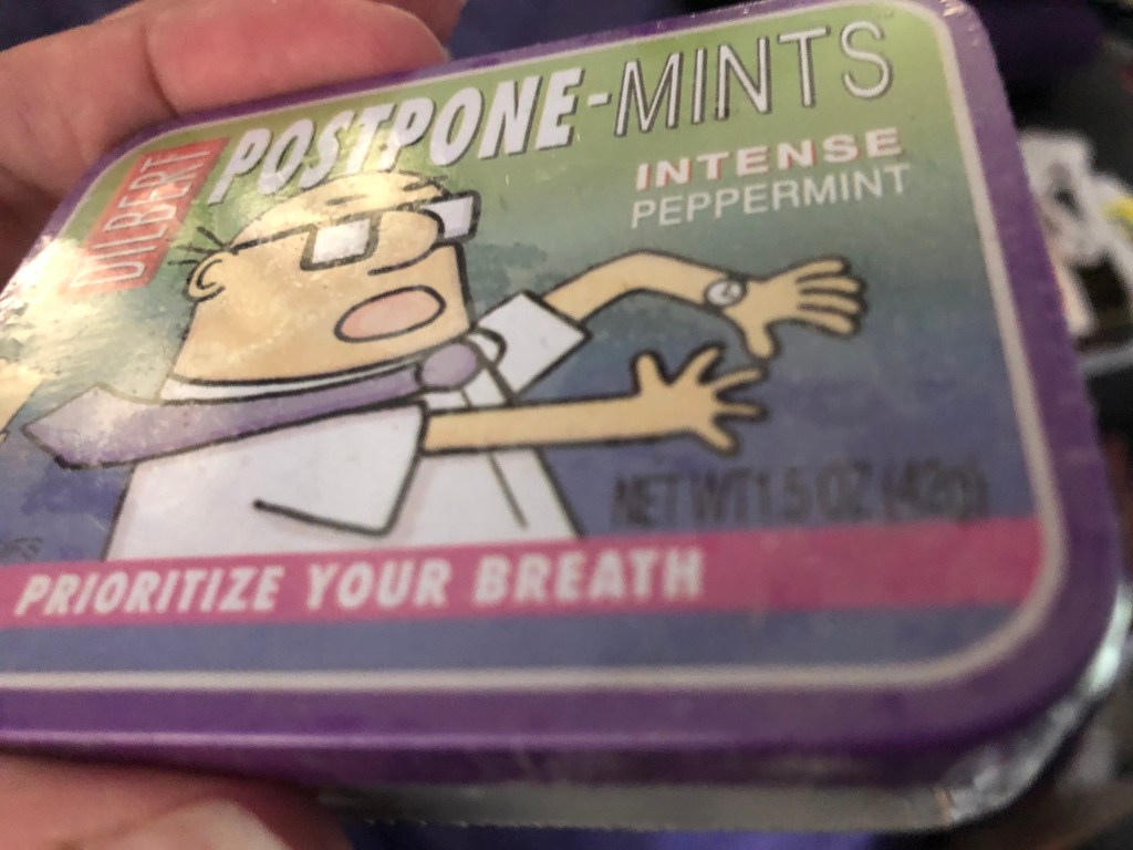 That’s right, you had a tin of Altoid-style mints that made light of the fact that you didn’t get around to things. And just to put a capper on it, take a good look at the corner of the tin: