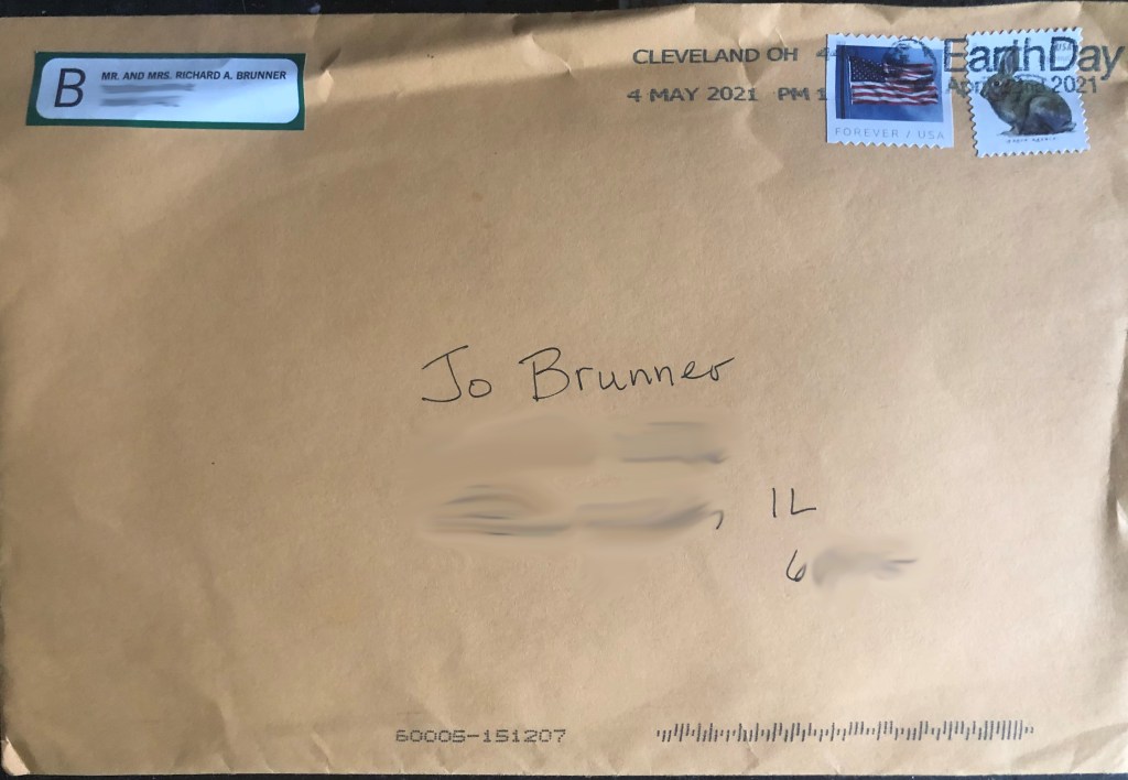 But this was different. Not only was it addressed to ‘Jo Brunner‘ (her maiden name, which you never set up to receive mail here), it was coming from someone in the Brunner family. Not the typical junk mail your parents would receive.