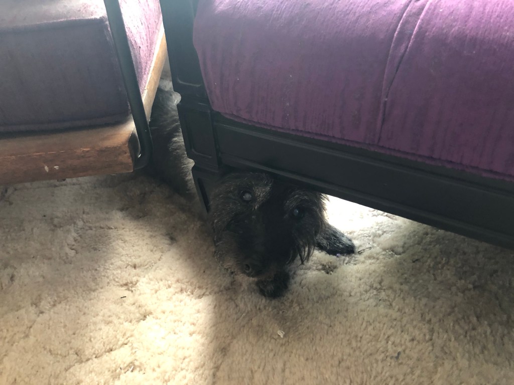 In what little hindsight I’ve been able to exercise, I probably should hope my theory of confined spaces is in fact correct. His breed, the cairn terrier, was bred to be ratters: heaven help us if there are rodents under the tree he’s trying to sniff out. It shouldn’t be, as you’d engaged a pest control company to pay us a visit every quarter shortly before your departure. But it’s just enough to get me concerned.