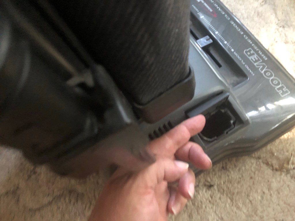 Uh-huh. That’s the slot that the attachment horse is supposed to plug into. It explains why any of the attachments we were using weren’t working because they weren’t plugged in. And as a result, not only were they not getting “the proper amount of suction,” as the Dyson guy always talks about, they weren’t getting any.