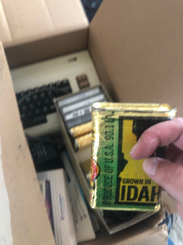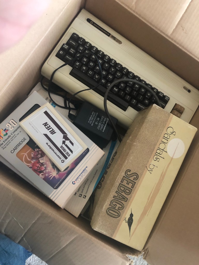 That’s right, your first computer. A Commodore Vic 20, complete with tapes of games and, I suppose, other data. I confess, I never bothered to look. Heck, I don’t even know how to put it together, nor would I know how to operate it.