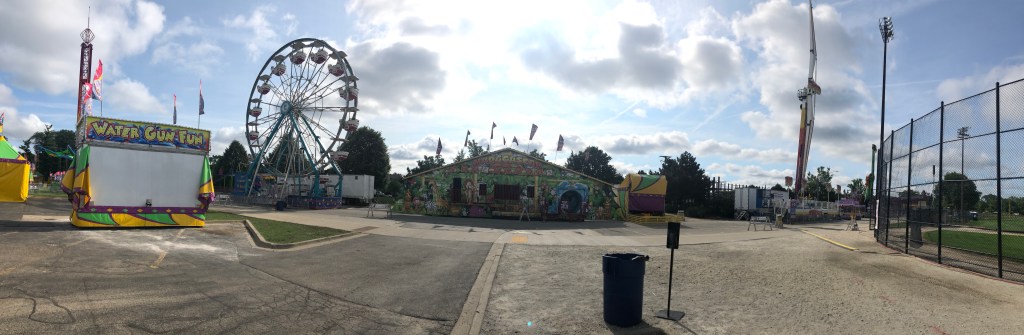 P. S. It would seem the joke’s on me this afternoon. After making a point of heading out early in order to hang around Recreation Park (where everything was set up), it turns out that everything is still as silent as when I was heading to the ‘office.’ Encountered a handful of roustabouts while I was entering the fairgrounds, and they explained that nothing opens until five today, although for the rest of the weekend things start up at around noon. Okay, lesson learned. And, as predicted, I’m only writing you to tell you this because things went wrong. Oh, well.