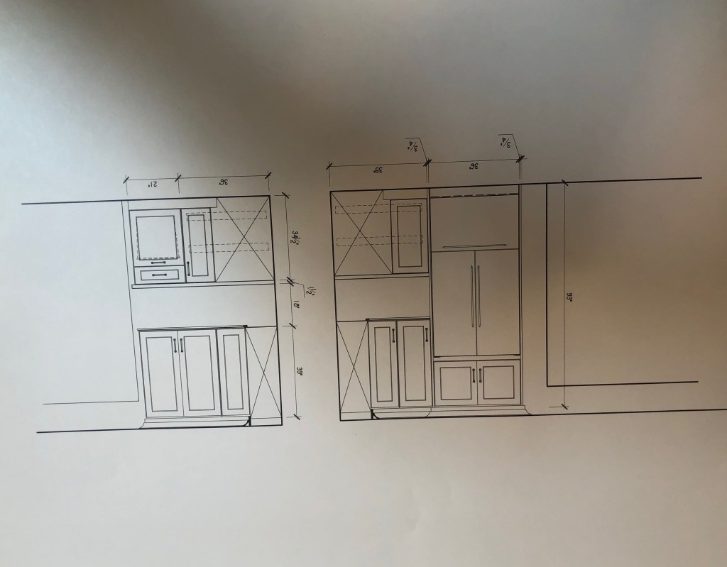 This wasn’t their only plan; they had also come up with a blueprint that uses the same ‘U’ shape that our kitchen uses now, but even before they brought the plans out, they were both talking about how little space that ‘U’ shape allows for. and I’ll be honest, having counterspace in opposite corners would be useful, especially considering how we usually have two people working at the same time in the kitchen – and I certainly hope that continues going forward (Meg, I hope you’re out there and reading this). They tried not to tip their hand about the two plans, but I pretty much guessed it right away. And that’s fine. I have to admit, I think it’ll work.