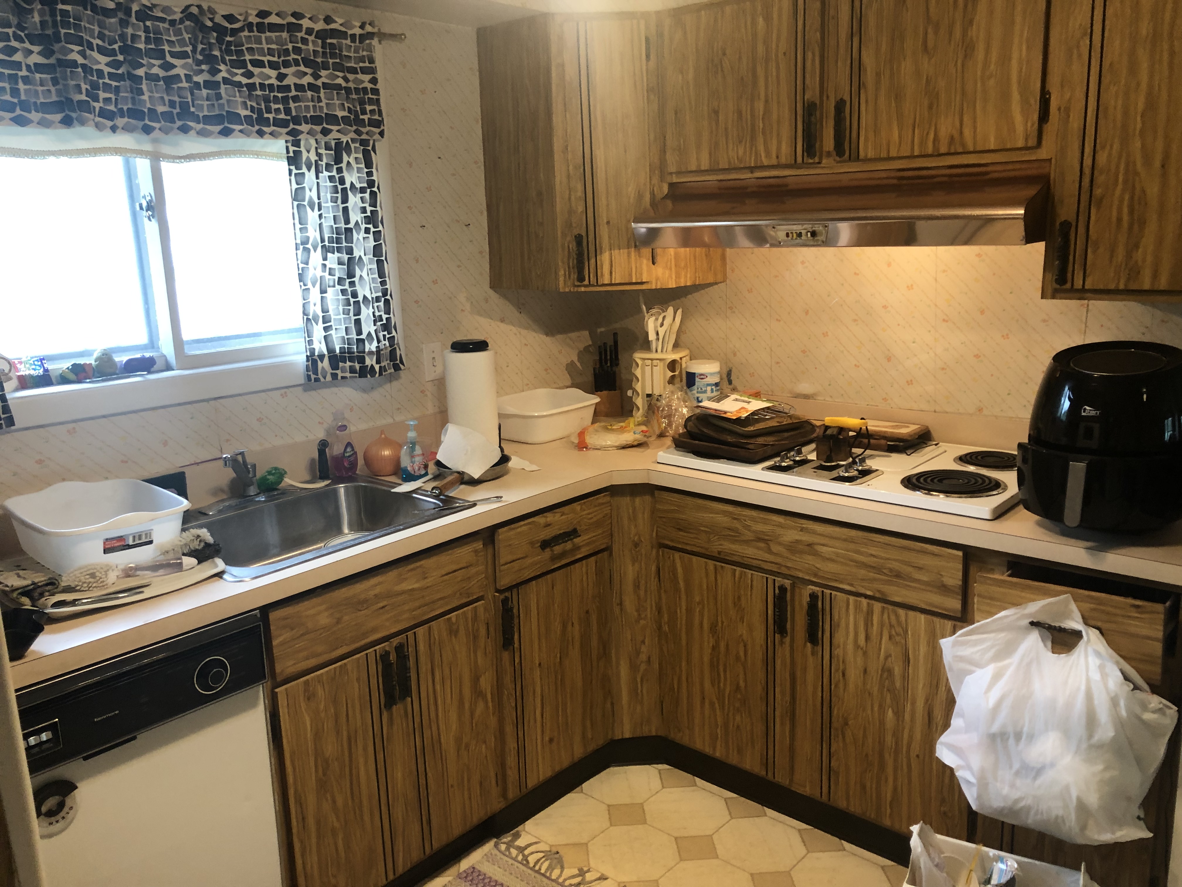 I’m a little disappointed that there was no place for an island (or would it be a peninsula?), but I understand what they say about it being a very small kitchen. Have to make do with what we’ve got. It does lead to problems when it comes to eating in the kitchen, however. Not sure what we can do about that.