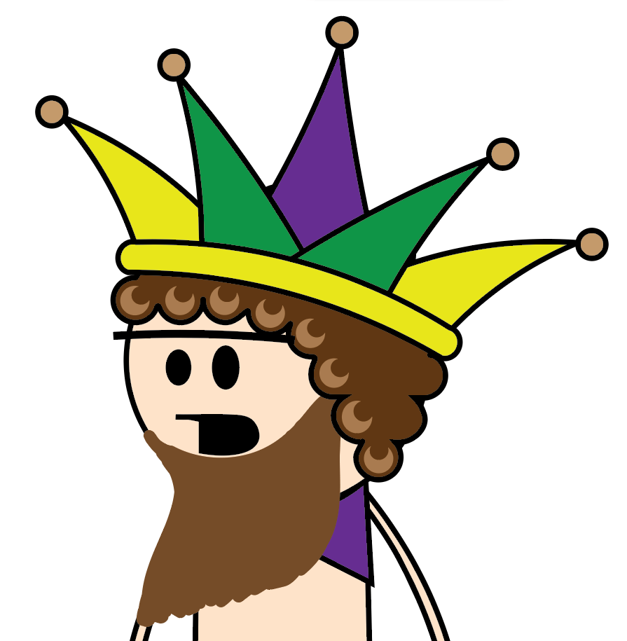 The final concept, which came to me as a confluence of my appreciation for Proverbs 30, our visit to New Orleans, and an online game of Drawsaurus with our friends during the pandemic. One of us was trying to draw a crown, and somehow it wound up looking very much like a fool’s cap: the only difference was that the latter had bells on the end of each point. I came up with the idea of having a city of wise fools – like Gotham or Chelm – where all the inhabitants wore fool’s caps that jingled as they walked in a never-ending party that was the entire city. In it, the central character, Agur, just wanted some peace and quiet in order to study, and cut the bills off of his cap. Over time, he would be recognized as the wisest man in town, and through certain adventures – including fending off on locust invasion – was placed in a leader ship role in the town, essentially making him king, with his cap serving as a crown.