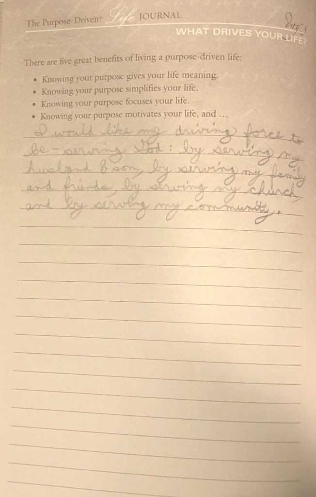 “I would like my driving force to be – serving God: by serving my husband and son, by serving my family and friends, by serving my church, and by serving my community.”