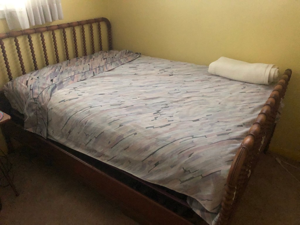 So yesterday, between Jan and myself, we got everything removed from the bed in the kitchen yellow room, run it all through the laundry – using plenty of bleach (another thing I really didn’t know how to use properly) – and once everything was dried off, laying it back out on the bed.