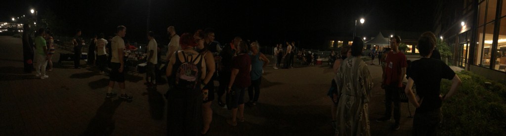 It seems, too, that my idea of being here on Thursday isn’t unique to me. The parking lot – at least the first floor of it – is almost completely full. After a couple of false starts, I do find a place, though. I find myself commiserating with a group getting out of another car right behind me. Apparently, they are just as aghast at the crowded lot as I am. Well, you remember all the chance at the end: “Four day con! Four day con!” It seems that everybody is about to get their wish.