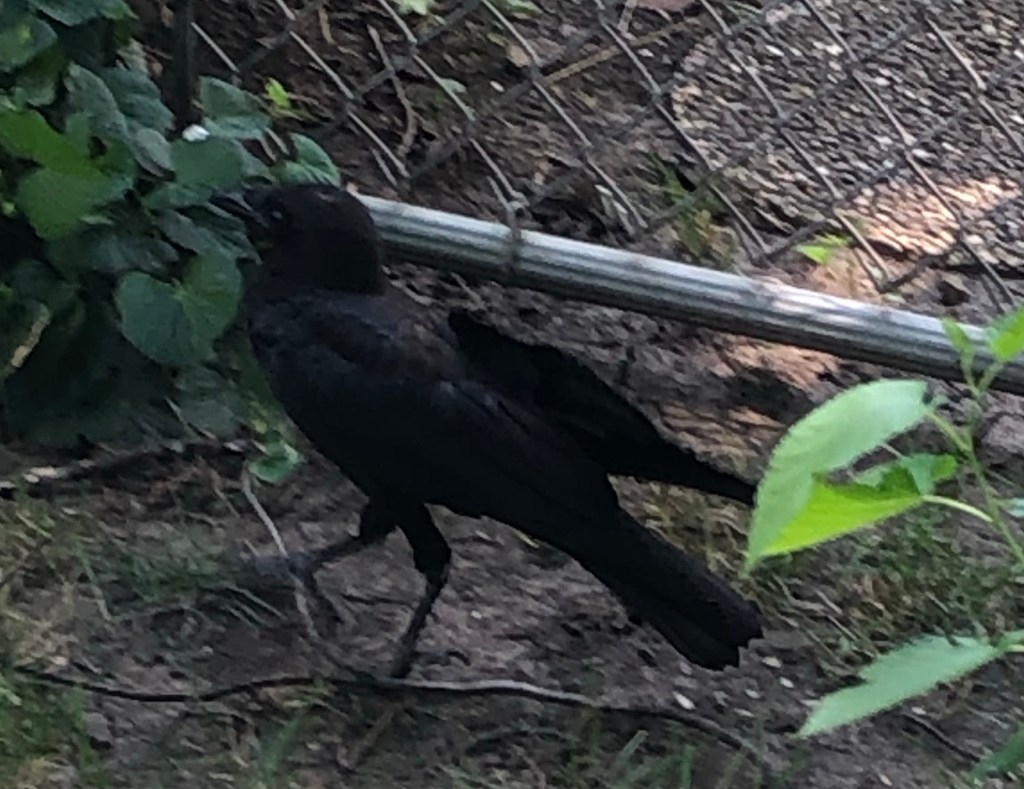 Unfortunately, he doesn’t have anything to offer me. There are no licenses with regards to keeping crows as pets, so the village has no record of who owns it – assuming someone does. So there’s no owner to give it back to you, and nobody on social media has been looking for one – evidently that’s a tool that animal control uses on a regular basis to deal with escaped pets and the like. He suggests that I leave our gate open a crack for the bird to escape, if I’m worried about it finding food. However, he also says he’ll let me know if he hears from somebody in the next couple of days. Well, if the bird escapes by then, that won’t do them any good. I offer to keep the gate closed until Friday, whereupon, if I don’t hear from him, I’ll open it up and let the bird go. He expresses appreciation for my having done my due diligence, and that’s pretty much the extent of it.