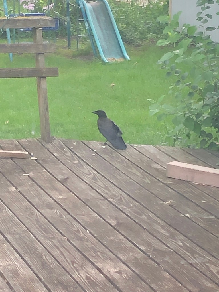 Yesterday, we received the strangest visitors; a pair of painters who claimed to have been from several doors down north. Evidently, the neighbors’ place they were working at had a pet crow that got loose, and jumped the fence, and had I seen it, or could they look in our backyard to see if it might be there.