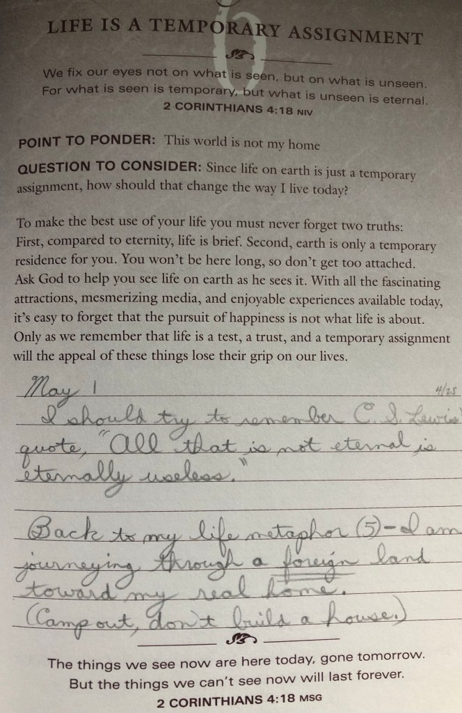 “I should try to remember C.S. Lewis’ quote ‘All that is not eternal is eternally useless.’”