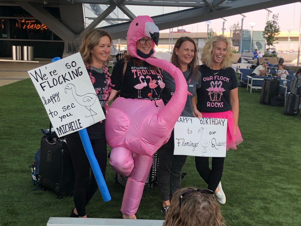 But I don’t get very long to sit around and start writing to you, because a text comes in. Evidently, Luke’s gotten an earlier flight, and he’s here already. So I can meet up with him almost straightaway – assuming I can find him in the middle of an airport. And I don’t care how small of an airport it is (and it isn’t – remember the train to baggage claim?), it’s still a haystack. And he’s still a needle.