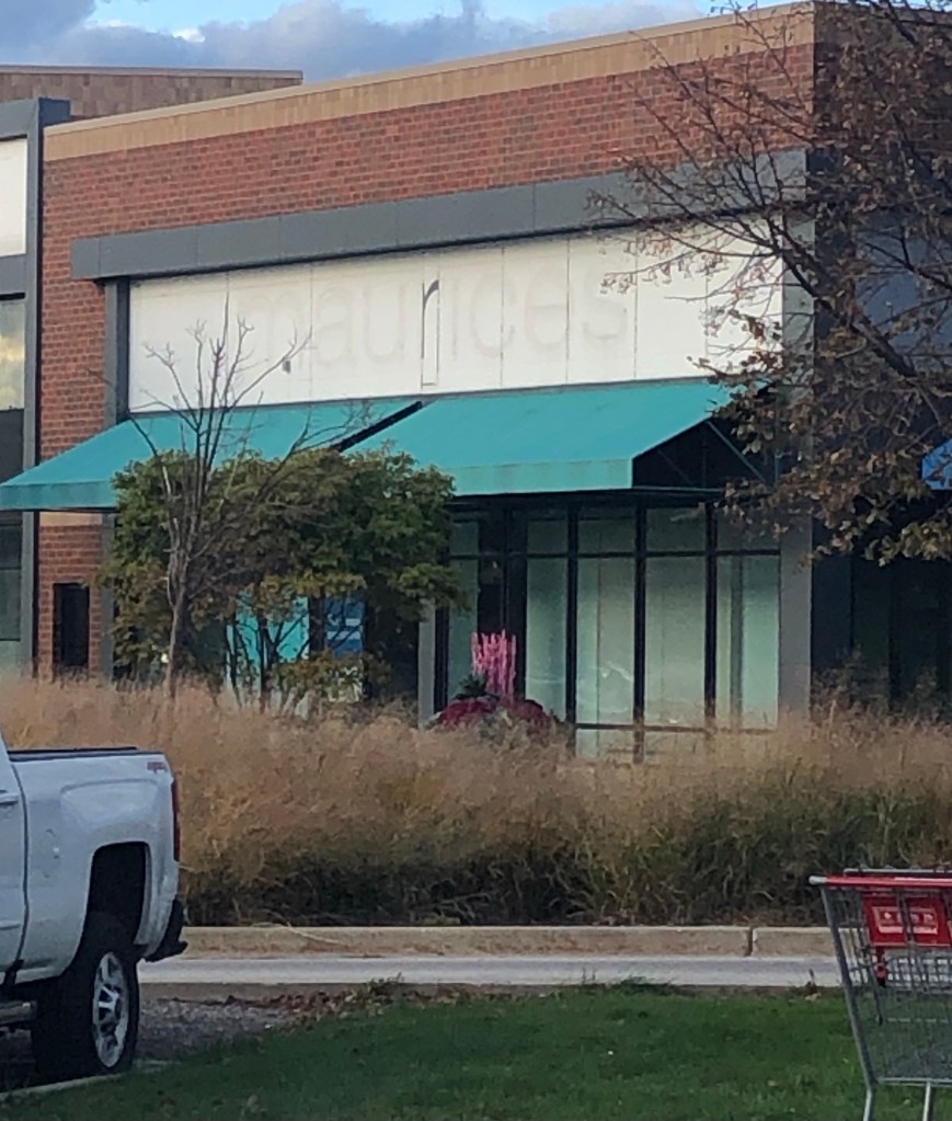 The outlet in the town square closed up quite some time ago, and if my memory serves me correctly, in its place is a local art gallery. We tried to donate a number of your parents art pieces to the place; I think they were glad to have them, and we promised to bring them more from their collection, but I don’t recall if we completed that task. I don’t think we determined that we had made our last trip down to Macomb at the time you met your fate. But in any event, this was my sole association with Maurices – I almost assumed that it was a local business, until seeing it crop up in Randhurst Village a few years ago. I think I was the one who pointed it out to you, rather than the other way around. But you never went there, not that I consider that a criticism. I guess it just wasn’t your style anymore.