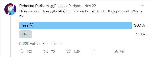 That being said, I don’t know how things would work out if the ghosts and landlords were swapped. What would she say about a ghost fangirling it up while she’s trying to work?