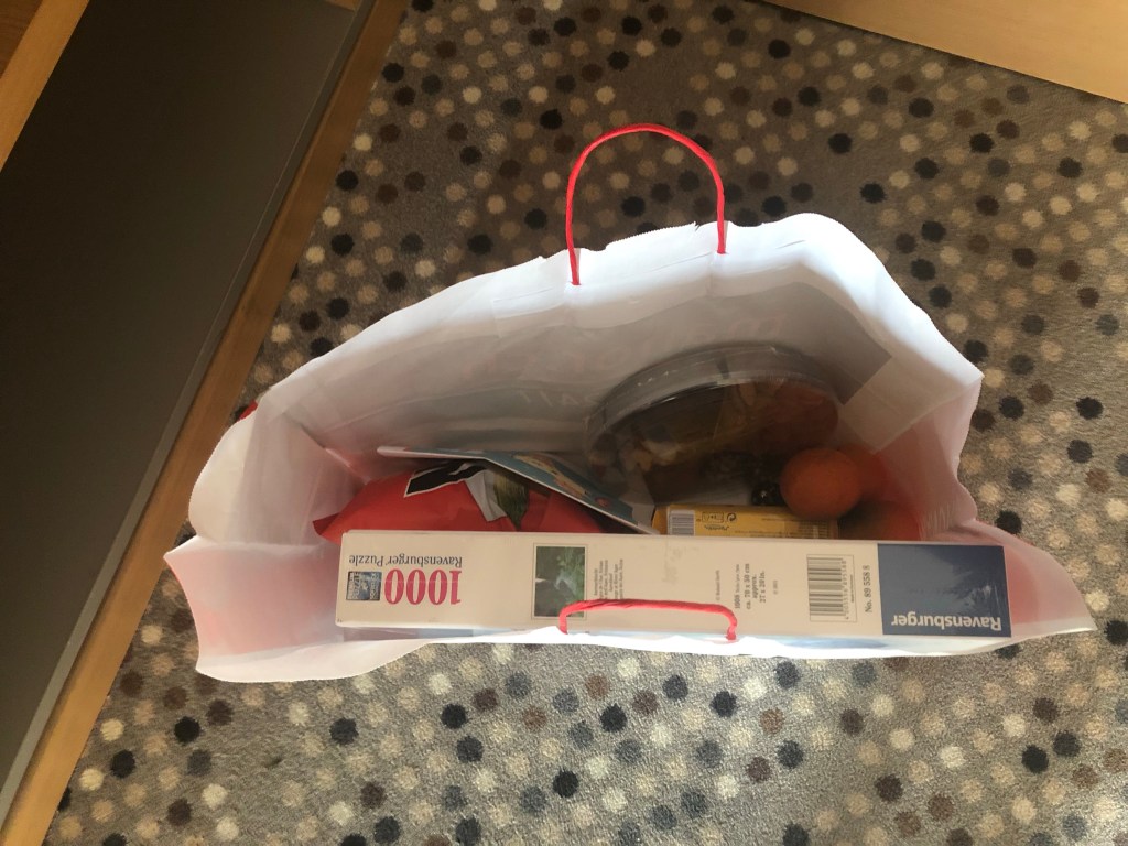 You’ll get occasional knocks on the door, but by the time you put your mask on and open the door, there will be no one there. Just the food you ordered (which I will admit is very nice, as it saves me from having to determine whether and how much to tip the delivery person when they’re not there. So many socially awkward interactions avoided this way), which you can bring in and enjoy; I promise, I’ll tell you about the last few meals later on today. Sometimes, however, the deliveries are even more surprising: