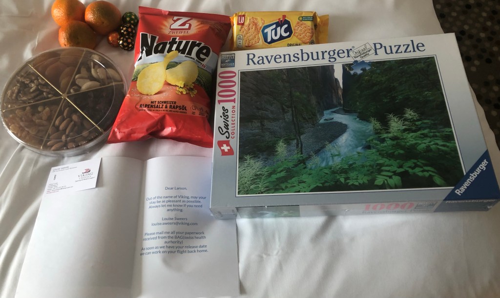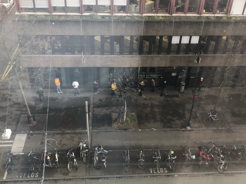 Yes, that’s right: I am across the street from the police headquarters for the entire canton of Basel-Stadt. If I were to go out the door, the authorities (who have been notified about my condition; Viking is required to, I understand) would be on me like white on rice. Again, for now, I don’t feel so great, so it’s not like I’m going to make the effort to try. How this is going to shake out in a week or so, when I’m feeling that much better (I hope), well, we’ll have to see how that turns out.