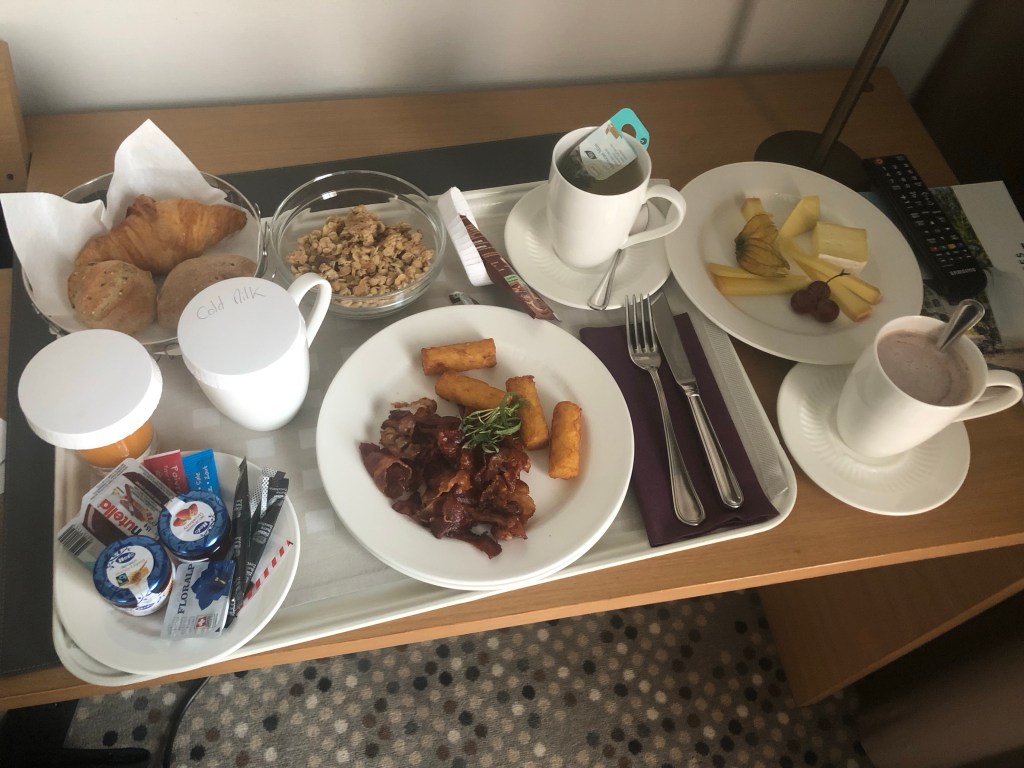 Breakfast is a little bit different, as I am dealing with but two options: either a continental breakfast, which simply includes a selection of breads and spreads made for me, or an American breakfast, wherein I choose all manner of things I want to have brought to me. Either way, I am to hang the card on my door, with a time I want it delivered. Yeah, I think I want to have my choice of things for now.