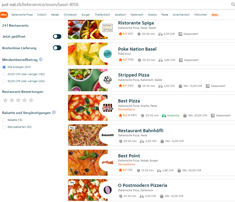 The fellow at reception suggested that, if I got bored with the room service offerings, I could go to eat.ch and place an order for delivery to the hotel.