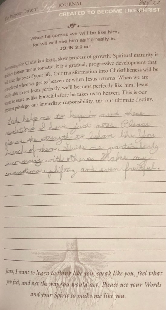 “Lord, help me to keep in mind these resolutions I have just noted. Please give me the strength to behave like You in each of them. Guide me particularly in conversing with others. Make my conversations uplifting and even fruitful.”