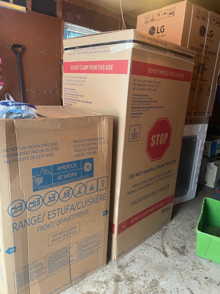 I remember days in my childhood when we would get a major appliance (as rare an occasion as that might be), Jenn and I and the neighbor kids could take a box of crayons to it, and turn it into a clubhouse. Imagine what it would be like come late April, when everything gets installed, and all these boxes – plus the ones the cabinets are likely to come in – are emptied out. Why, you could build an entire condominium complex for a neighborhood full of kids to play in.