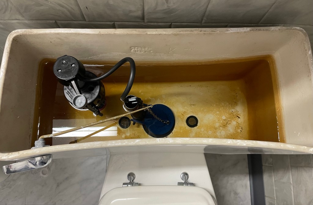 Upstairs, I wouldn’t have noticed were it not for the fact that I actually use the office from time to time these days, but every five minutes of calm is followed by two or three of the tank running like it was trying to completely refill. And of course, the one downstairs was completely dry, like it had been shut off years ago.