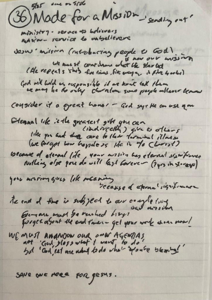 Question to consider: What fears have kept me from fulfilling the mission God made me to accomplish? What keeps me from telling others the Good News?