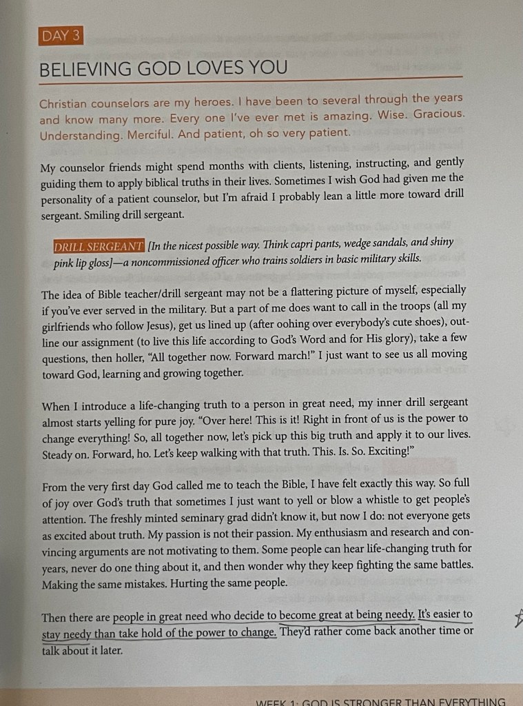 I know you had no intention of sharing that parenthetical remark detailing your own struggle with a sense of pride toward your unique circumstances (and I’m a little confused about them, as Daniel was well into his teens at the time you were doing this study), but I’d look at this as a case of ‘admitting you have a problem’ that is foundational in twelve-step programs, and the sort of understanding that Jesus Himself required for people to come to Him – He couldn’t heal those who refused to admit their infirmities, after all.