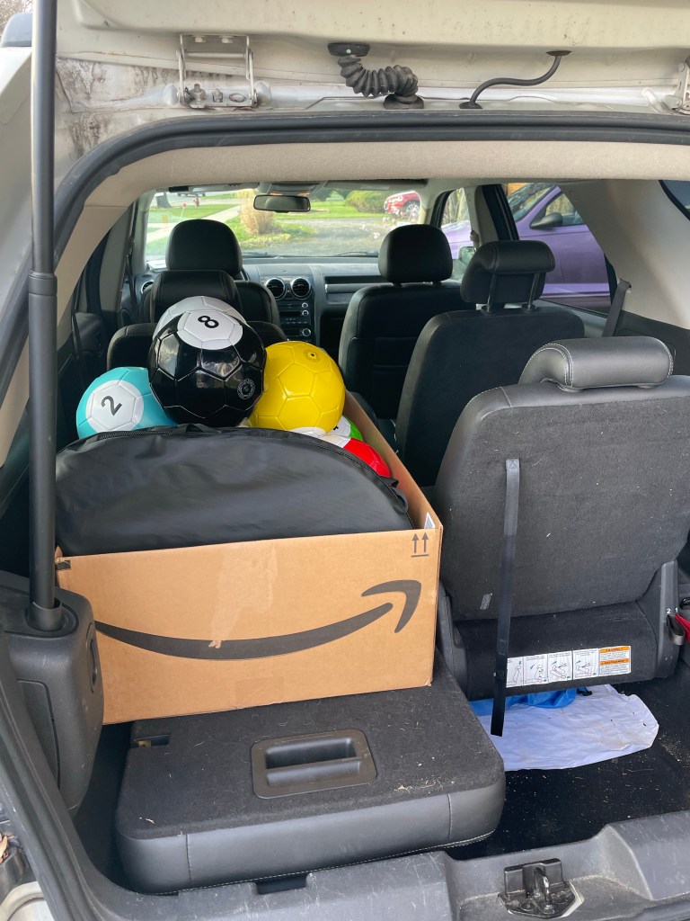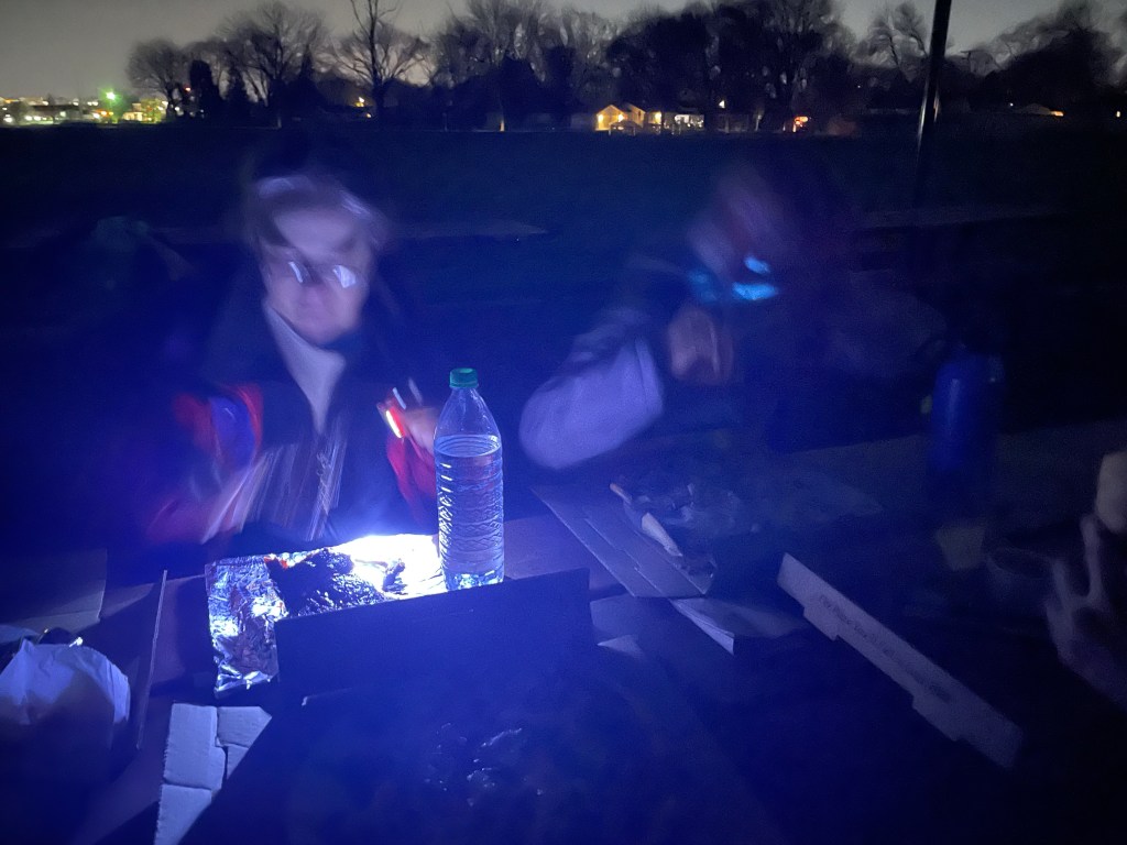 By the time we were done eating, it was too dark to play anything (or so I thought), so I began to pack up the balls and nets, and put them back in the box.