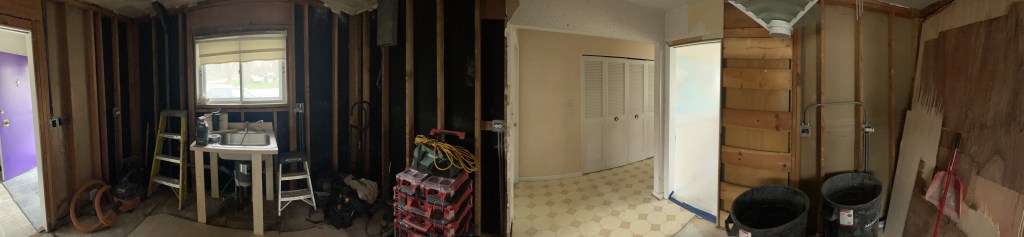 Of course, what with it being only the second day, there’s not a lot of progress to be made, at least in terms of actual construction. On the other hand, the process of destruction can easily be seen particularly when looking at the laundry room from certain angles: