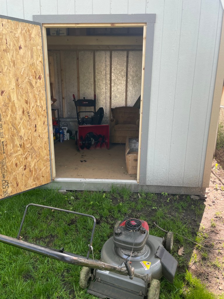 You can’t see it in the picture, but I also moved those soccer billiard balls into the shed; the next time the girls come over (and hopefully, it’ll be cooler than it already is this morning), we should be able to set everything up here, since the lake has finally dried up in the back yard.