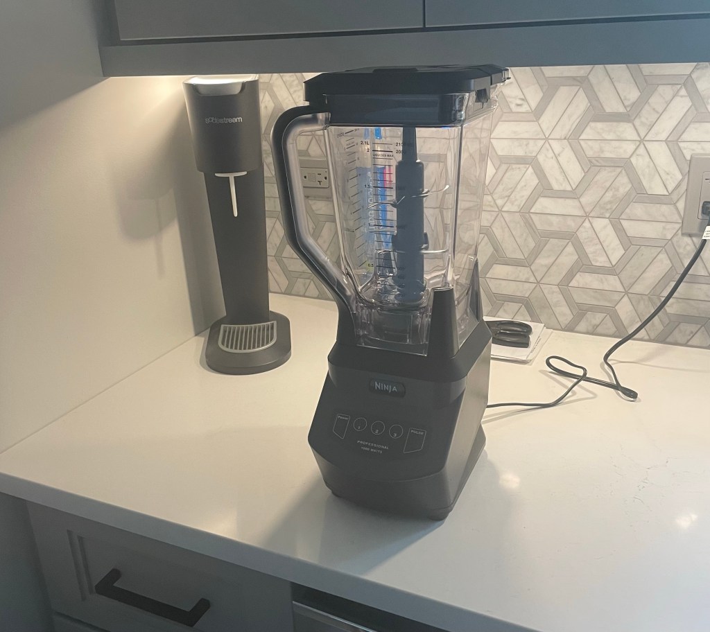 Did I mention about this when Kris was over on Monday? She tried to plug the vacuum cleaner into an outlet in the kitchen, so as to clean up what few crumbs I’d dropped on the floor since the protective cardboard had been peeled up… and nothing happened. She tried several different plugs before discovering one on the opposite side of the kitchen, by the new refrigerator, that seemed to be functioning, and getting on with her task – not that there was all that much to clean up yet, apart from the inner workings of the now supposedly non-functional air fryer.