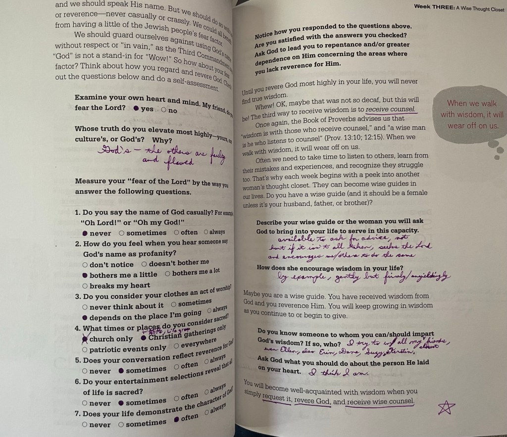 Some studies required a considerable amount of contribution on your part, but even in those sort of books, there were days that weren’t as demanding as others in terms of required writing. This particular day seems to be one of those. Most of the questions required simply checking a box, rather than spelling out your answer in a matter of sentences.
