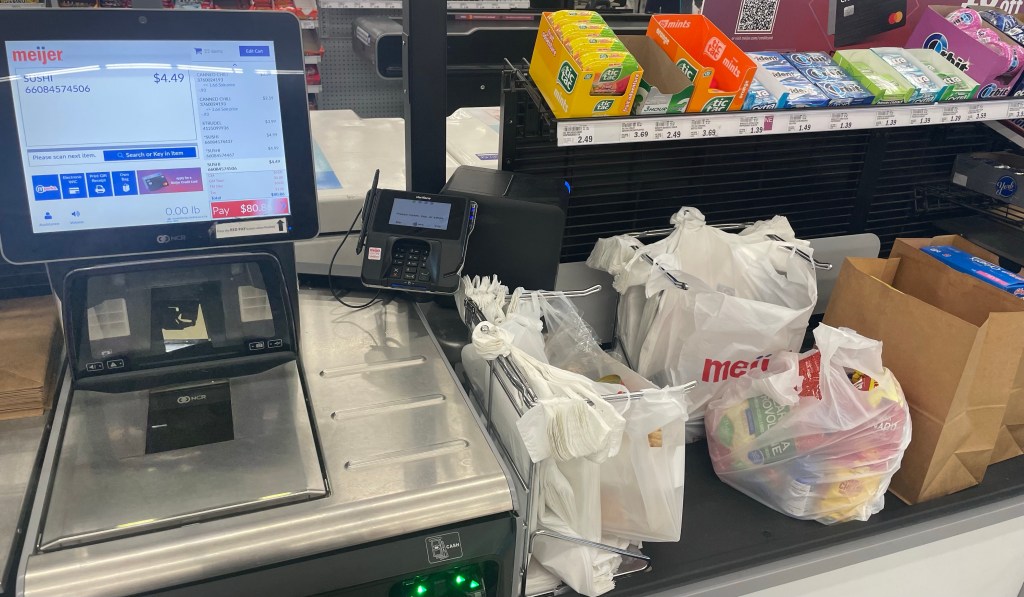 I even gave Daniel a call for input on my list; if nothing else, he might make sandwiches more often than I do, and might want a say in what lunch meat I bring home. But he really didn’t offer any suggestions, other than something for me to pick up for him for a late lunch on my way home, which, of course, isn’t from Meijer. Not that I mind that he’d rather have something from any one of the local establishments; inflation or not, we’re doing well enough that it’s not a problem for us, after all. At worst, it’s just another stop or two.