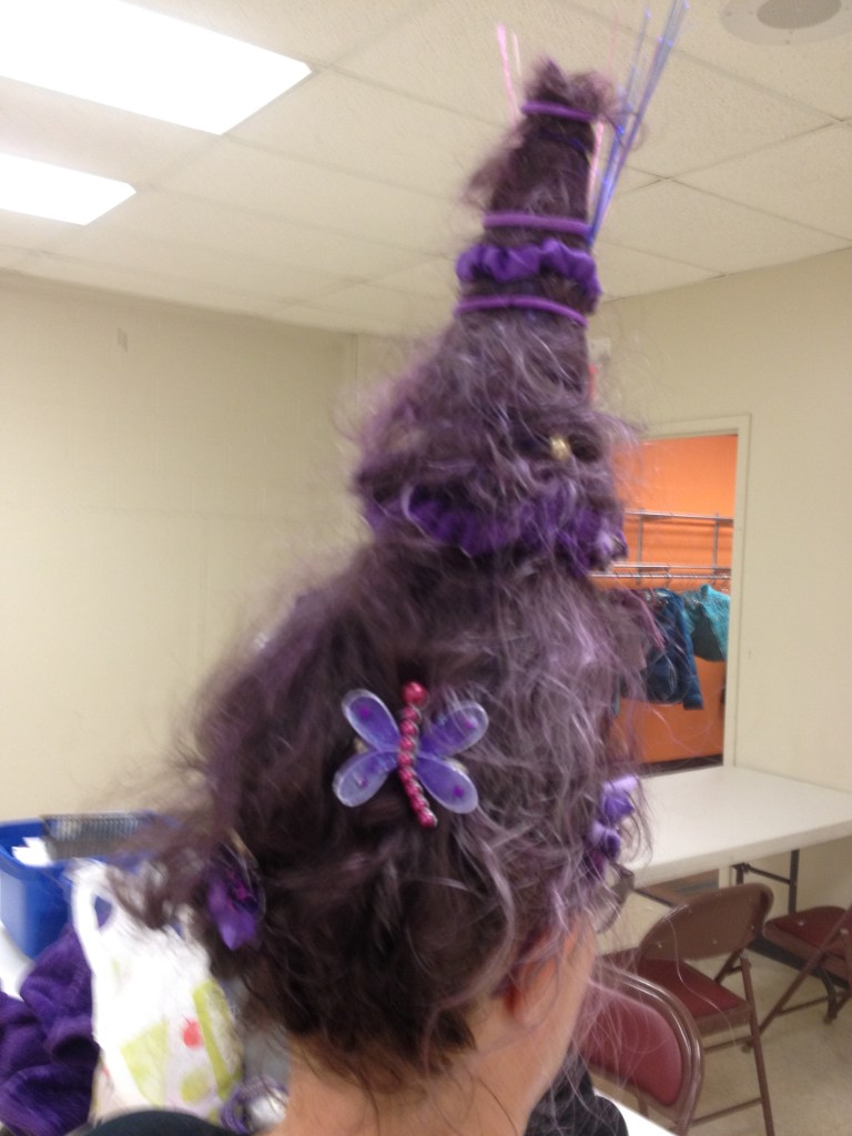 But you persuaded me to stay on, and find a new, more administrative position, assisting Diana in registering kids at the beginning of the night, and preparing awards to hand out to various deserving clubbers by the end of each meeting. It’s worked out well for the better part of a decade and a half. Meanwhile, you were a prominent face among the leaders, always getting into the theme of each night as it came up. I still have these photos of you from the Crazy Hair Night in February of 2020: