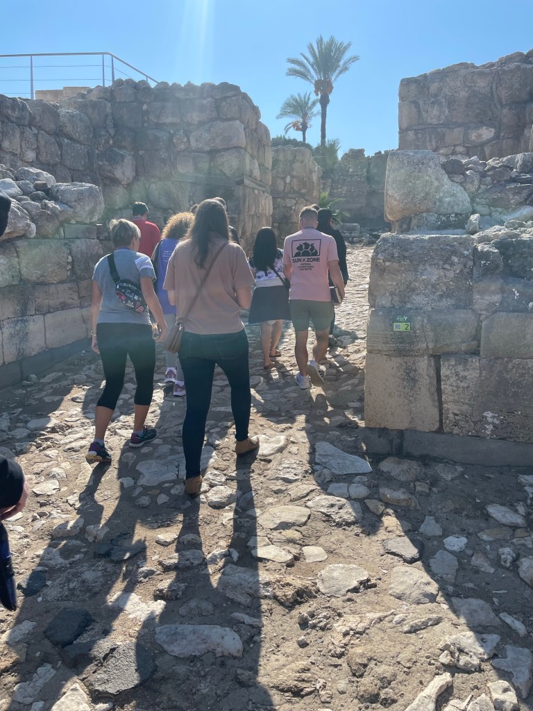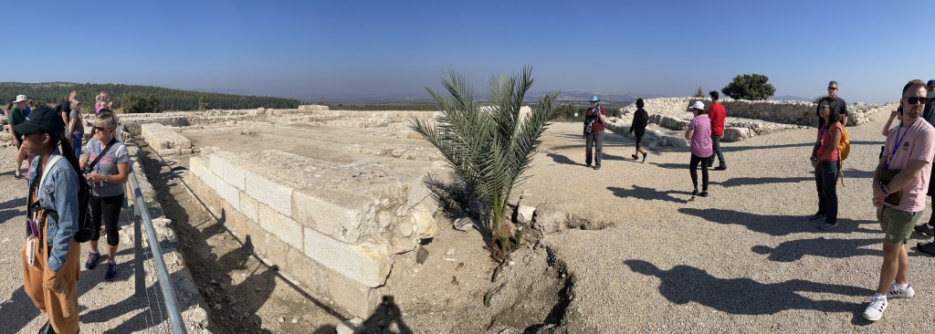 As we take our leave of Tel Megiddo, there’s one more thing for Yael to inform us of, and it’s as we pass the local prison, which is hard to miss, surrounded as it is with razor wire and guard towers. Evidently, they attempted to expand the facility recently, but of course, they struck antiquities in the process. Among the mosaics they found was one with the word ‘Christ’ written on it. The significance to that is that they believe they might have found one of the first ‘house churches’ from the first or second century, when Christianity was a banned religion (rather than being grudgingly tolerated as an offshoot sect of Judaism) and people met secretly in their homes.