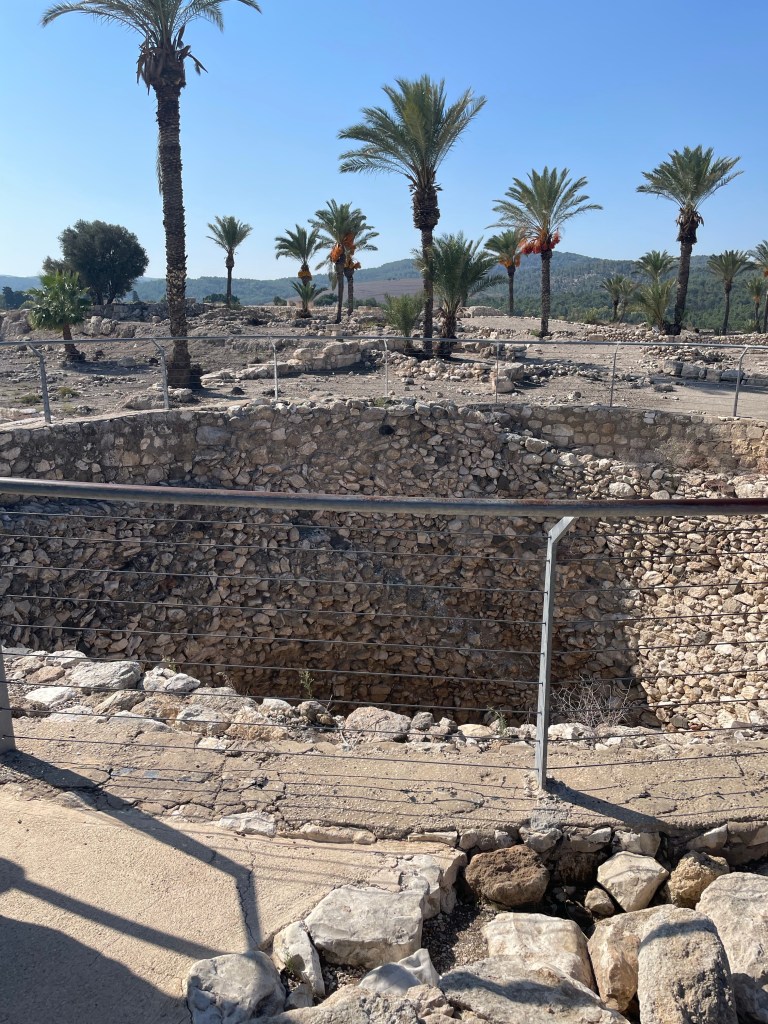 Megiddo is also the largest ‘tel’ in the country. Tels are archeological sites, upon which cities were built in ancient times – with one city after another built upon previous versions of the same city (often by conquering civilizations who destroy a culture but like the location – which is, after all, the chief virtue of real estate). There are twenty-six layers of civilization, extending from 5,000 years ago until the second century A.D. But with the rise of Hellenic culture, and its requirements for more space for amenities such as bathhouses, arenas and the like, hilltop cities like Megiddo didn’t hold the same usefulness as they did in the days when it was a strategic advantage to see your enemy coming from a long way off. And so, the place was left to time and decay, much as a great deal of what is modern Israel.