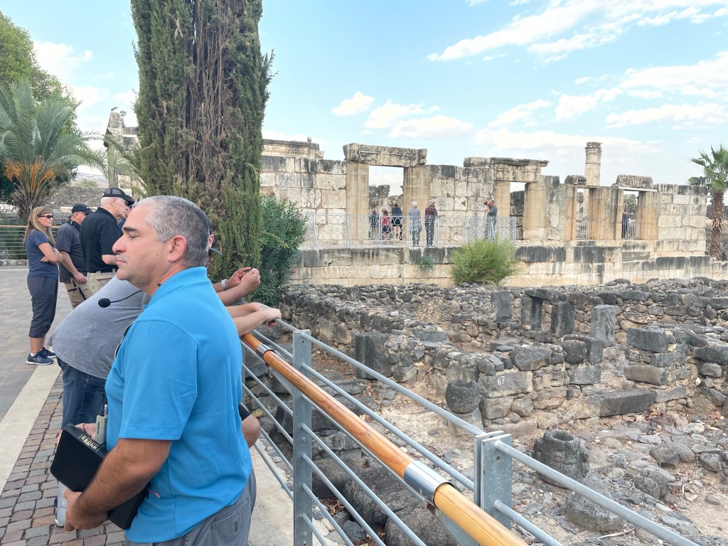 Our other stop before visiting Omer’s house is in Capernaum (Kfar Naḥum – the home of Nahum, the prophet who pronounced final judgement on Ninevah). Omer actually joins us here, and takes over the lecture duties from Yael. He talks about how Magdala and Capernaum are referred to as ‘A’ sites, while Peter’s house is considered a ‘B’ site.