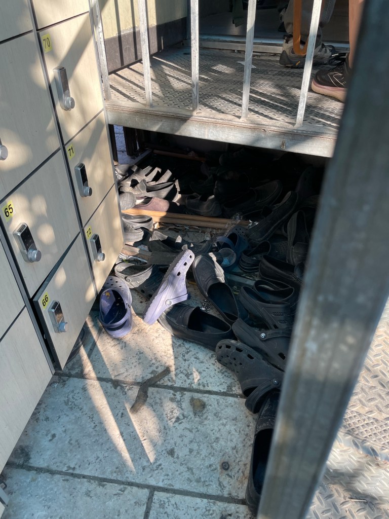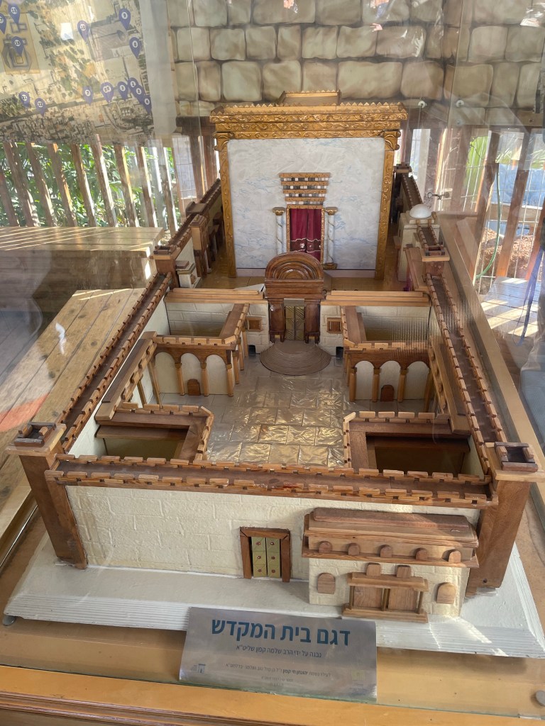One of the rules is that you’re not allowed to bring musical instruments (presumably for worship, which would offend the Muslim sensibilities) onto the temple mount. Daniel’s shofar does not pass muster, and is… well, not confiscated as such, as much as just held there at the security checkpoint for him to pick up once we’re done here. This isn’t the only thing that’s detained; no one’s allowed to bring Bibles onto the mound, either, and Yael is holding several of them even as we pass by her. She stores everything in a single locker, asking us to remember to remind her to pick them up when we’re done.