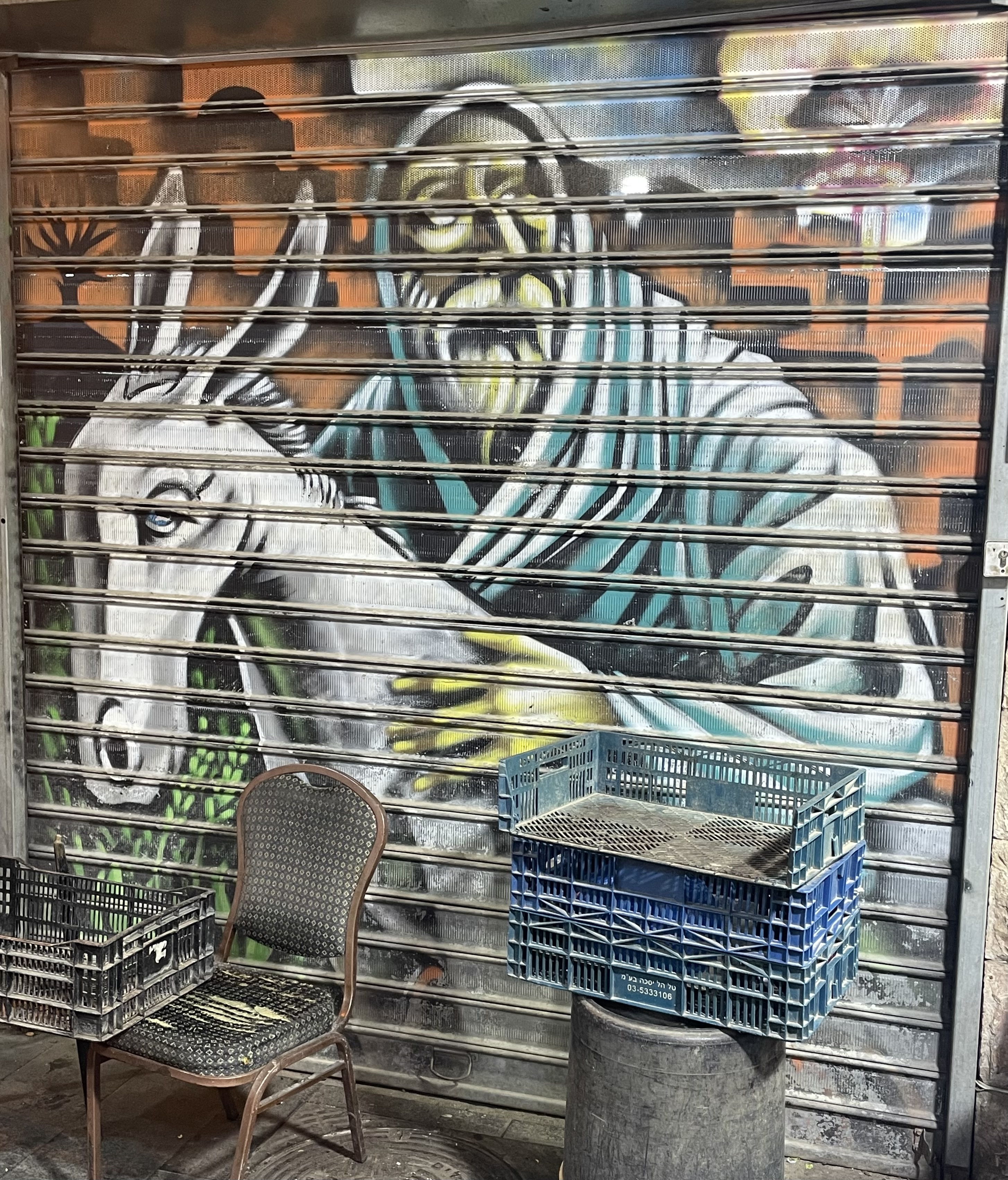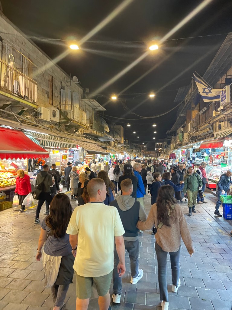 At least by being there first, Maddie is able to walk the rest of us through buying our rail tickets. I pay for Maureen (for which she recompenses me in dollars), and we’re on the way to the Mahane Yehuda Street station, only three stops down from our hotel.