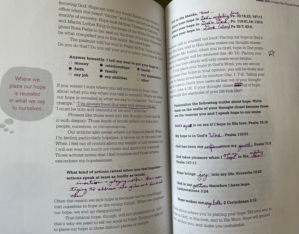 Personalize the following truths about hope. Write them on the walls of your thought closet because these are the reasons you and I speak hope to our souls.
