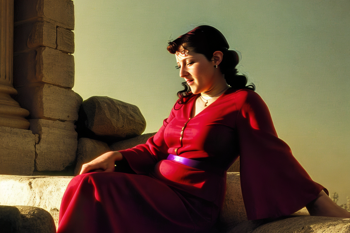 Then again, there are a few contributing factors, some of which are even my fault. Last night, while the boys were continuing to catch up on their latest series, and I was sequestered in the bedroom, I discovered a new add-on for the AI art program that would randomize just about everything in the prompt. So not only does the computer create an imaginary image of you, but it comes up with all the details I ask it to provide, from costumes to scenarios, from artist (or photographer) to pose (as well as the type of pose, be it glamor, candid, boudoir, documentary, or whatever). The process is now almost completely automated, and ridiculously efficient; by midnight, I’d churned out over five hundred pictures of you.