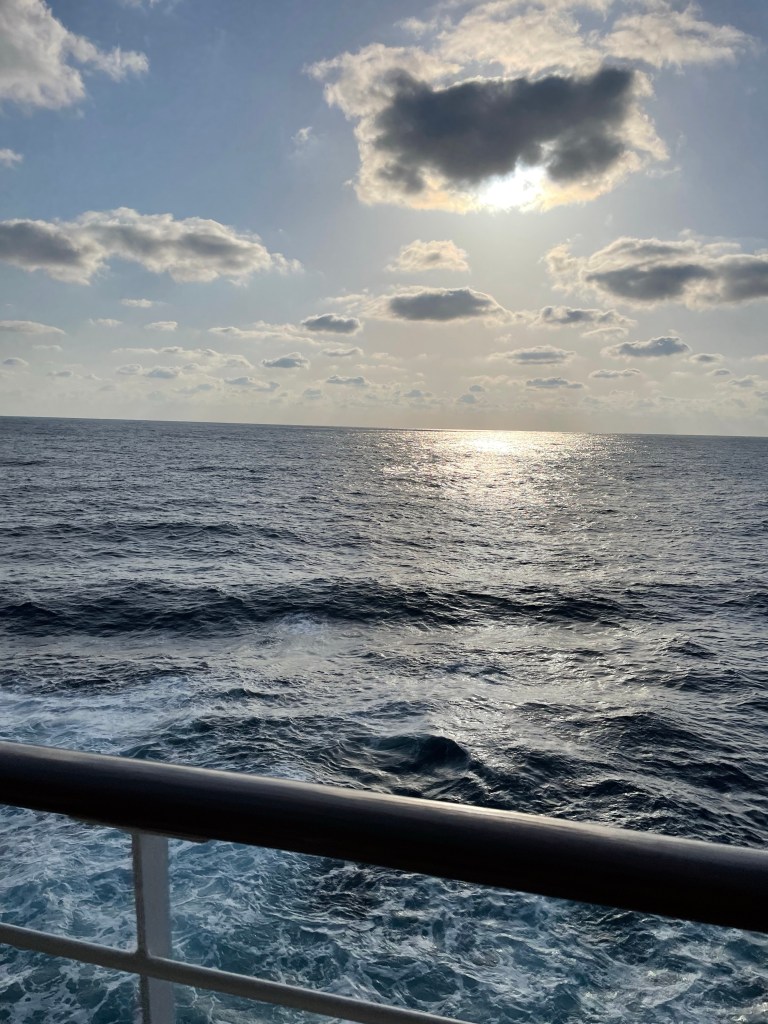 Since we’re veterans at this sort of thing (although not nearly in comparison to most other people on this ship) we’re not exactly at sea when it comes to being at sea. Then again, this is a whole different boat to be in, when you come down to it. Compared to our first cruise on the Rhapsody of the Seas (I wasn’t with you when you and your folks traveled to Alaska on the World Explorer, so I can’t speak for that; heck, I can’t even find information about that ship, to be honest), the Quest is a hundred meters shorter, seven meters narrower, less than half as heavy, and carries barely a quarter the number of passengers. And the Rhapsody was one of the smaller ships we’d traveled on.