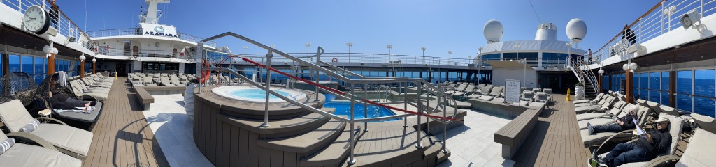 In short, this ship is absolutely tiny in comparison to our general experience, although again, I don’t know how it compares to your first trip on a cruise ship. To be sure, the preferred word to describe it is ‘intimate,’ but I’m trying not to use marketing euphemisms or serious pejoratives (Daniel refers to it as being ‘dinky,’ which may well be true, but it’s also a bit uncharitable). Besides, I’m not sure we’re exactly up for an ‘intimate’ cruising experience.