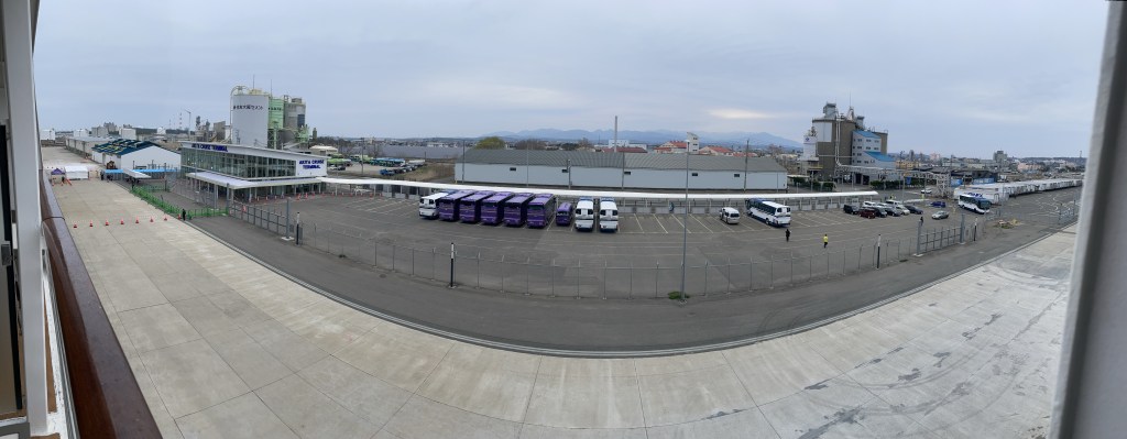 As we check in at the lounge, Daniel points out that this is more what he expected in terms of assembling for shore excursions (unlike, say, Aomori); everybody all together in a single room, waiting for their group to be summoned. And as it happens, our bus is the first number called, and we’re instructed to head for the gangplank. Unfortunately, nobody seems to be leading us; we’re left to find our way there ourselves. No one seems to know where they’re going.