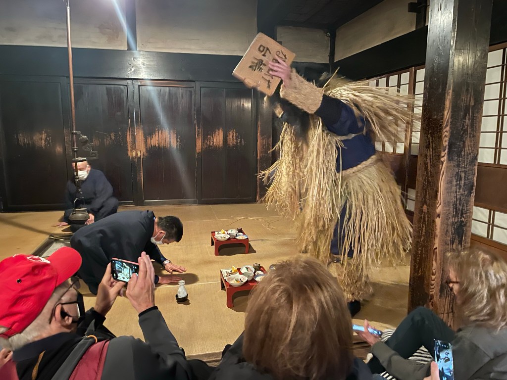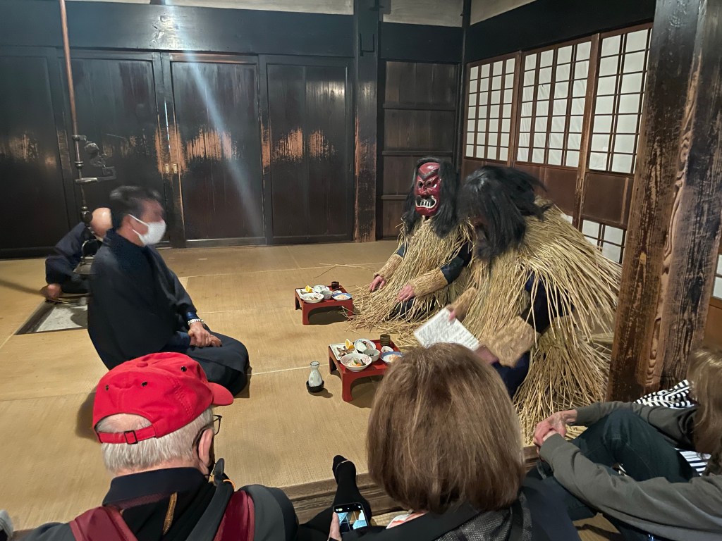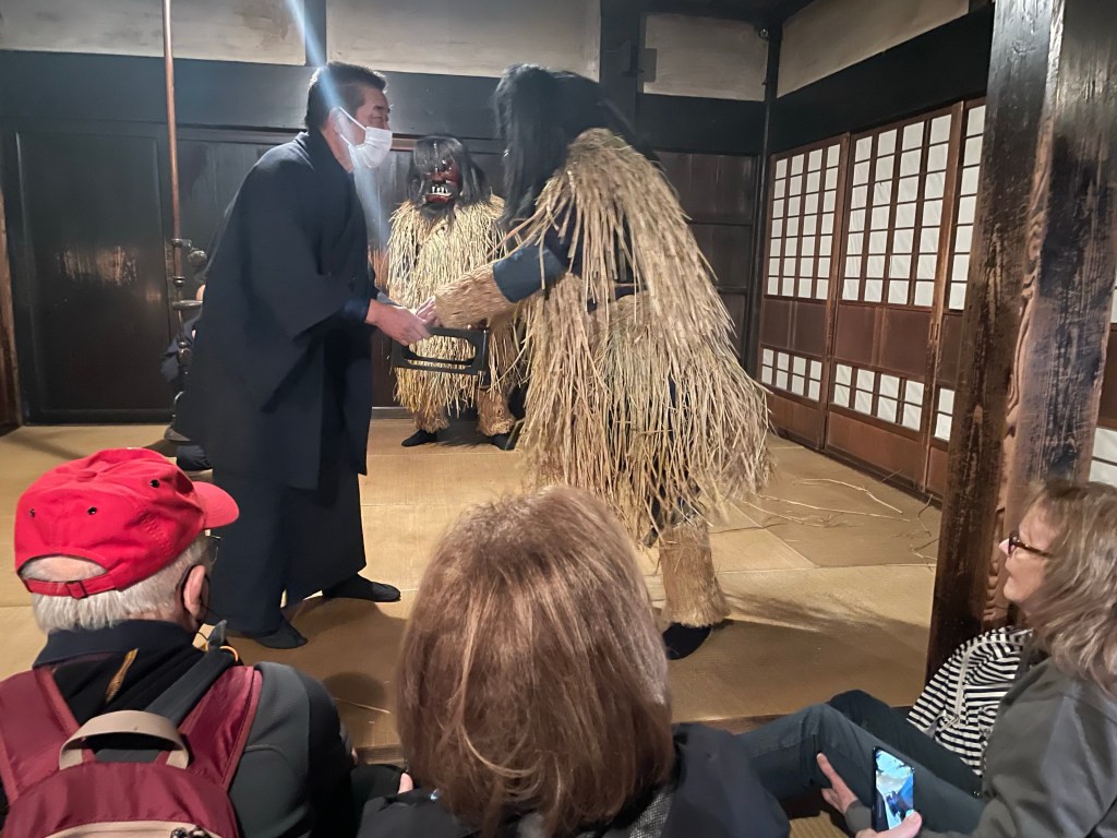 Daniel observes that the whole ritual seems like a combination of a visit from Santa Claus and Krampus. For my own part, given that the Namehage seem to know who is doing their schoolwork (and more to the point, who isn’t), I might guess that one of these benevolent ogres is played by the local schoolmaster. I later find out that it’s the single men of the village who play the role, so it’s not as if this is a parent-teacher conference in disguise. Still, one can’t argue with results; according to Masuda-san, Akita prefecture supposedly ranks as number one in scholastic performance, as determined by the national standardized test scores.