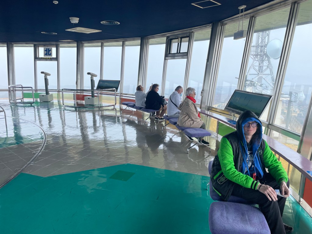 We drive for about twenty winding minutes before arriving at the observatory at the top of a mountain. The excursion spoke of a cable car, but it seems the driver is skilled enough to navigate an entire bus up these roads. We enter, and climb a spiral staircase to the observatory proper.