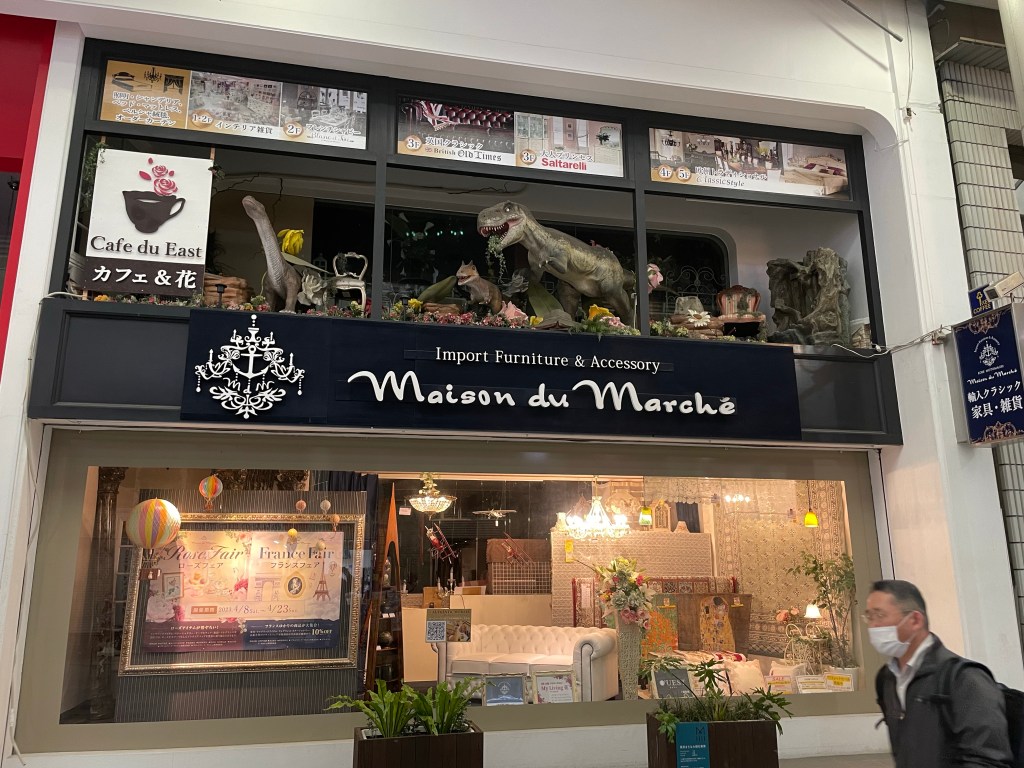 Which is not to say that there aren’t things to see, even as we walk past all these closed storefronts; I can’t tell if this place is selling furniture or dinosaurs – and I wonder, how much is this dinosaur in the window?