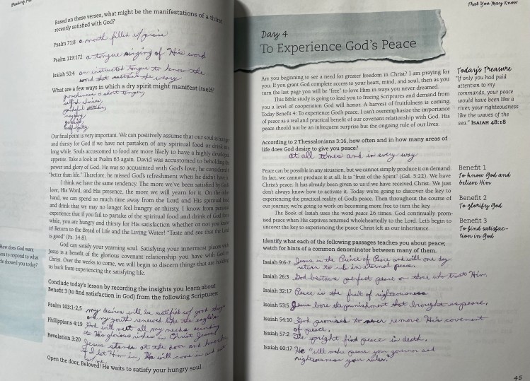 Conclude today’s lesson by sharing any new insight into Benefit 4 you have received: To experience God’s peace…